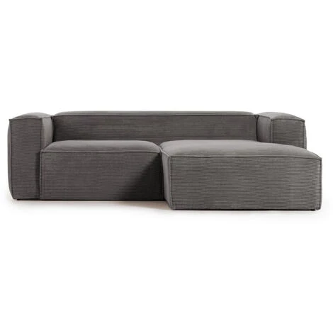 Canapé d’angle Blok 2 places méridienne droite en velours côtelé gris 240 cm