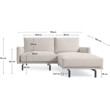 Canapé Galene 3 places avec méridienne droite beige 194 cm