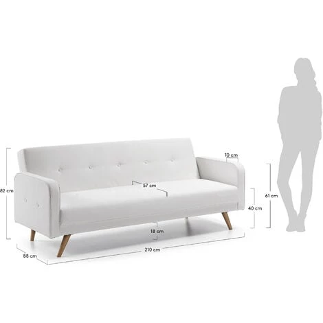 Canapé convertible Roger 3 places en polyuréthane blanc 210 cm