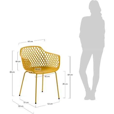 L’assise de Quinn est en plastique recyclable et son design perforé aux lignes arrondies crée un jeu de lumières et d’ombres. Elle s’appuie sur une structure en métal avec la même finition. Profitez-en à l’intérieur ou à l’extérieur.