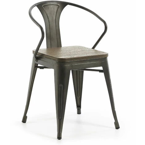 - Chaise en acier avec assise en bois massif de bambou.