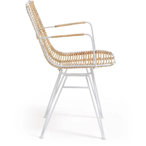 Chaise avec accoudoirs Tishana en rotin et acier blanc