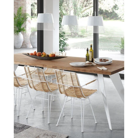 - Chaise avec structure en acier, recouverte de rotin pour un meilleur confort.
