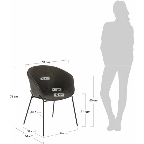 - Chaise avec revêtement antitache, déperlant et pieds en acier peint en noir.