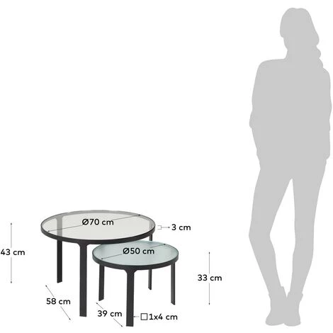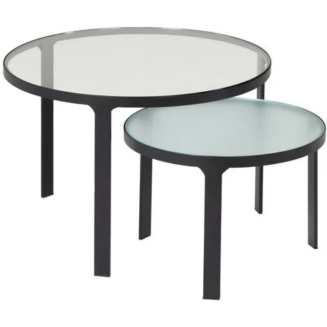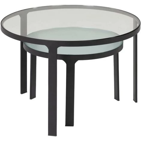 Cet ensemble de 2 tables d’appoint Ø 70 cm et Ø 50 cm a été conçu pour vos moments dans votre salon, seul ou avec vos amis. Vous allez adorer son contraste : une table a un plateau en verre transparent et l’autre en verre texturé.