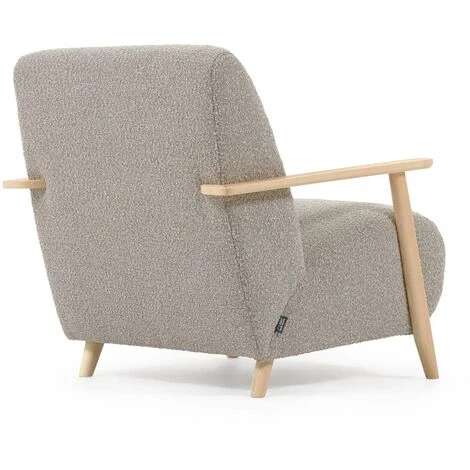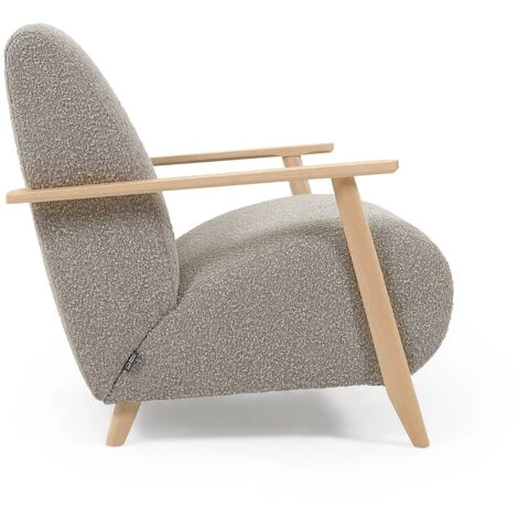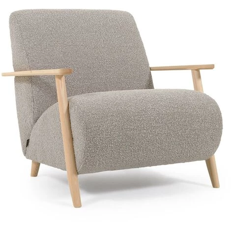 Un tissu en pleine tendance, comme le revêtement bouclette, se marie parfaitement bien avec le fauteuil Meghan. Doux et agréable au toucher, ce tissu contraste avec la structure apparente des accoudoirs en bois massif de frêne finition naturelle.