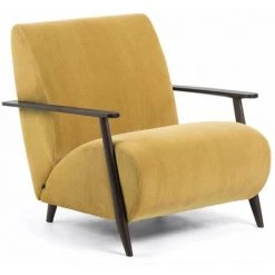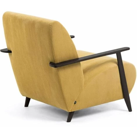 Fauteuil Meghan velours côtelé moutarde et pieds en bois massif de frêne finition wengé