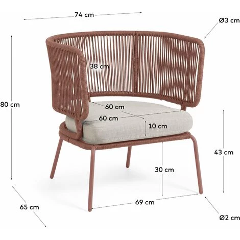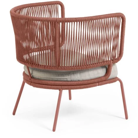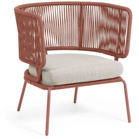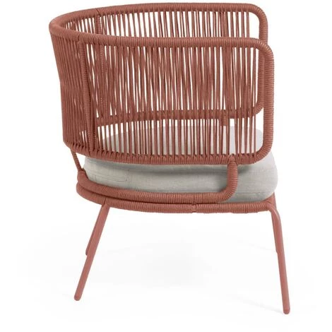 Fauteuil Nadin en corde terracotta et pieds en acier galvanisé