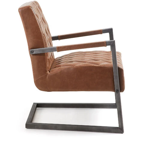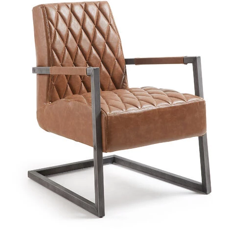 - Fauteuil avec assise rembourrée et revêtement en polyuréthane de couleur marron effet vieilli.