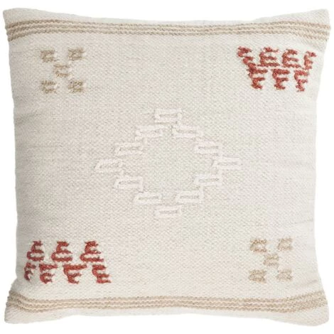 Housse de coussin Bibiana en laine et coton beige imprimés marron et terracotta 45 x 45 cm