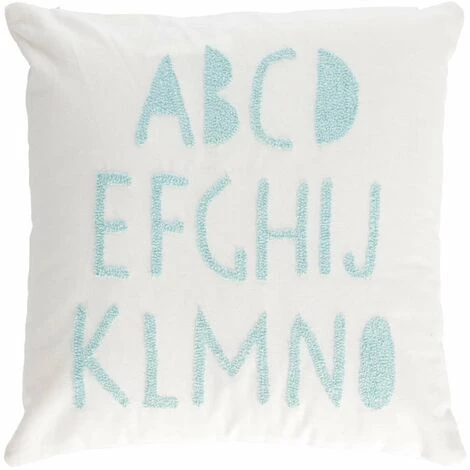 Housse de coussin Keila 100 % coton blanc alphabet bleu 45 x 45 cm