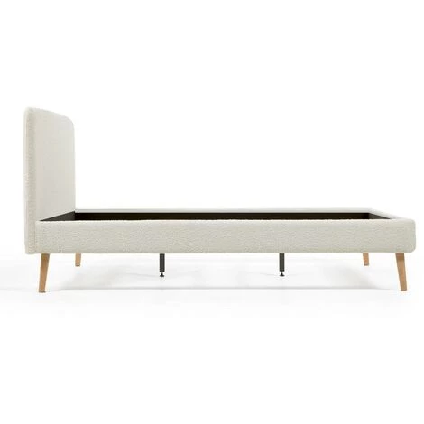 Lit Dyla bouclette blanc et pieds en bois massif de hêtre 160 x 200 cm
