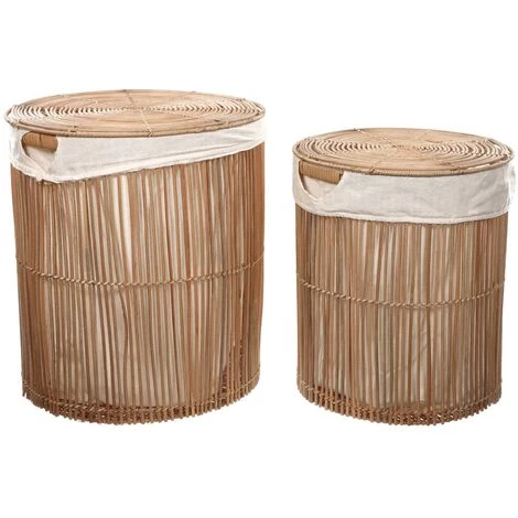 Lot Diadorin de 2 paniers à linge 100% rotin finition naturelle 48 cm / 58 cm
