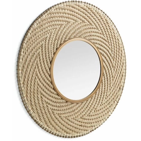 Chaque miroir Klevin est unique. De forme ronde, il a été conçu avec un large cadre de tiges de métal peint par pulvérisation en doré vieilli avec des cordes naturelles tressées à la main. Une pièce 100 % faite à la main. Le design vous aime.