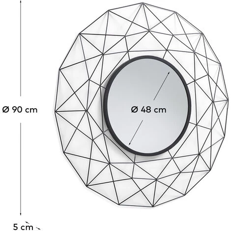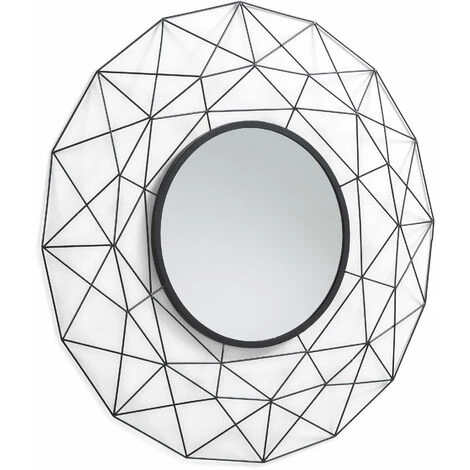 - Miroir mural rond avec structure en tiges de métal noir aux formes géométriques