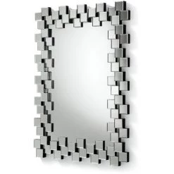 Miroir rectangulaire avec encadrement en verre biseauté en formes géométriques.