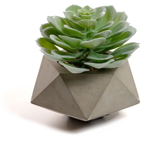 La succulente echeveria glauca est une plante décorative dans un pot en ciment à forme géométrique. L’intérieur du pot a été conçu avec un effet terre qui lui donne un aspect plus authentique. Un complément parfait pour apporter fraîcheur et couleur à vos intérieurs.