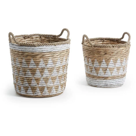 Set de 2 paniers en jacinthe d’eau naturelle avec dessin géométrique.