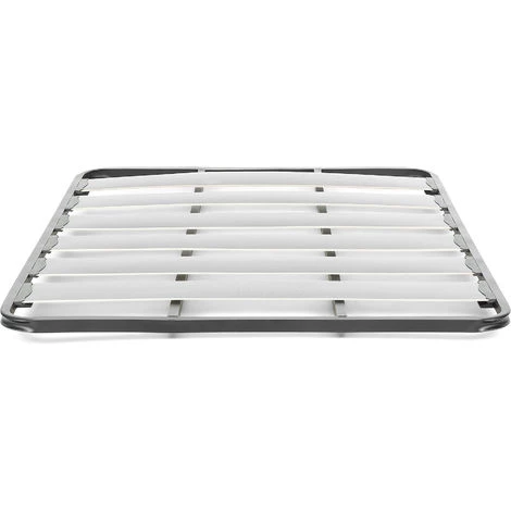 Sommier avec structure en métal couleur graphite et lattes en bois effet fibre de carbone. Joints en polyéthylène anti-bruit. Incorpore plaques d’union compatibles avec les pieds X ou S (non comprises). Utiliser 4 pieds.
