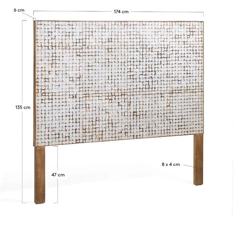 Tête de lit Kron avec pieds en bois massif de manguier et noix de coco pour lit de 160 cm