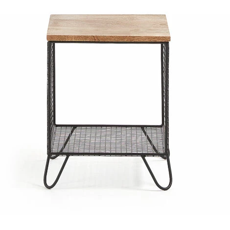- Table de nuit avec plateau en bois de manguier massif et structure en métal au design effet mesh, une maille métallique.