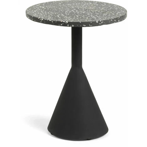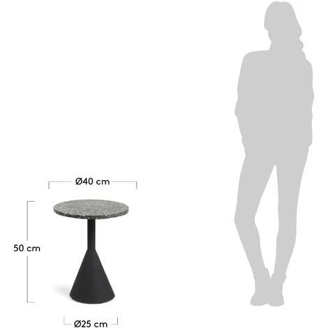 Table d’appoint Delano en terrazzo noir et pieds en acier noir Ø 40 cm