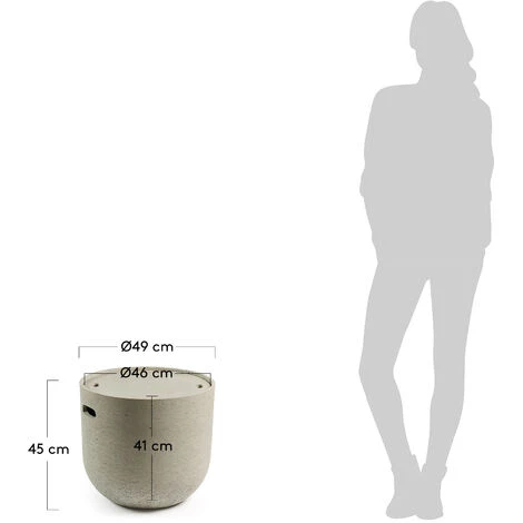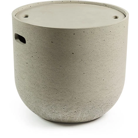 - Table d’appoint avec espace de rangement entièrement conçue en ciment et plateau de Ø58 cm amovible.