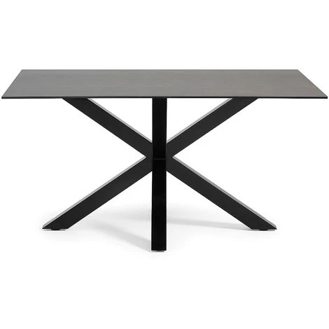 Table Argo 160 x 90 cm en grès cérame Iron Moss et pieds en acier noir