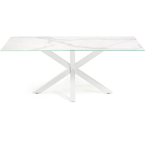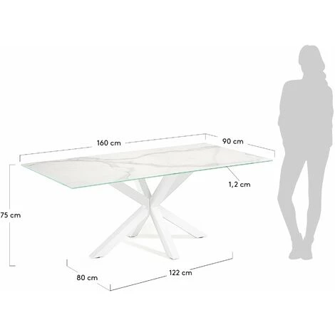 Table Argo 160 x 90 cm grès cérame pieds en acier blanc