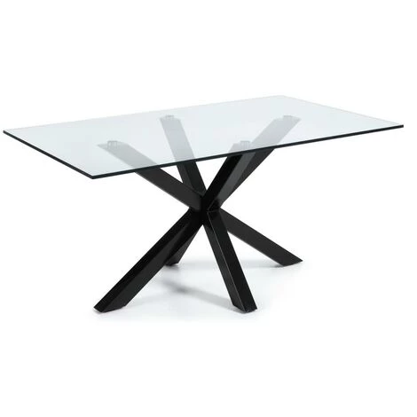 Table Argo en verre et pieds en acier finition noire 180 x 100 cm