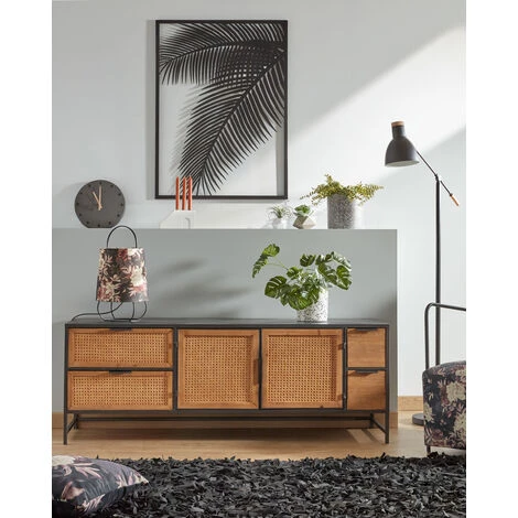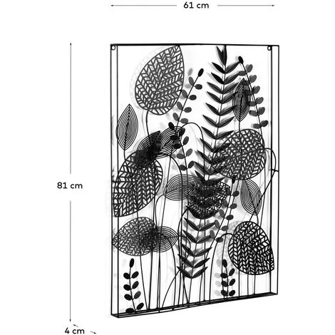 Le tableau Dimpa, entièrement conçu en métal noir, crée une oeuvre inspirée par la nature et basée sur deux feuilles de palmier. Cette pièce crée un ensemble de plans dans lesquels les feuilles créent un effet de profondeur, révélant également la cou eur du mur situé derrière. Ce tableau de 100 x 74 cm, peut être aussi bien être accroché en position verticale qu’en position horizontale. L’art est aussi intelligent.