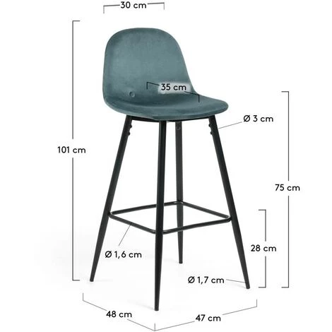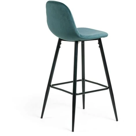 Tabouret de bar Nolite velours turquoise hauteur 75 cm
