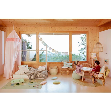 Un tapis entièrement en coton qui, grâce à son imprimé et ses couleurs, est la pièce idéale pour transformer sa chambre en une zone de jeux qui booste son imagination. Pour les enfants qui aiment tout découvrir.