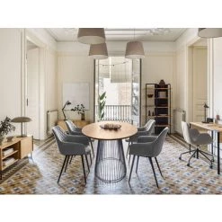 Kave Home – Table Ronde Tella En Céramique Motif Blanc Et Noir Et Pieds En Acier Noir Ø 90 Cm – Noir